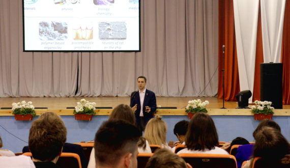 Четвёртый день фестиваля начался с выступления Дмитрия Жукалина, кандидата физико-математических наук, начальника управления кафедры физики полупроводников и микроэлектроники Воронежского государственного университета. Дмитрий прочитал лекцию «Самые известные покорители нанокосмоса» в 101 школе.