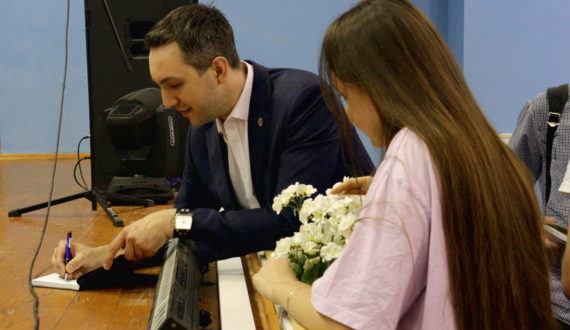 Вечером Дмитрий Соколов выступил в книжном магазине «Амиталь» на Пушкинской. Он представил свою книгу, которая вышла в издательстве интеллектуального партнёра фестиваля «КСТАТИ» «Альпина нон-фикшн». В своей книге Дмитрий постарался раскрыть уникальную область физики – магнетизм небесных тел. Книга написана доступным языком и подойдёт для читателя любого возраста.