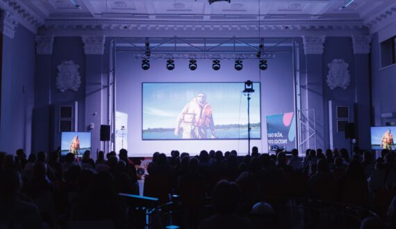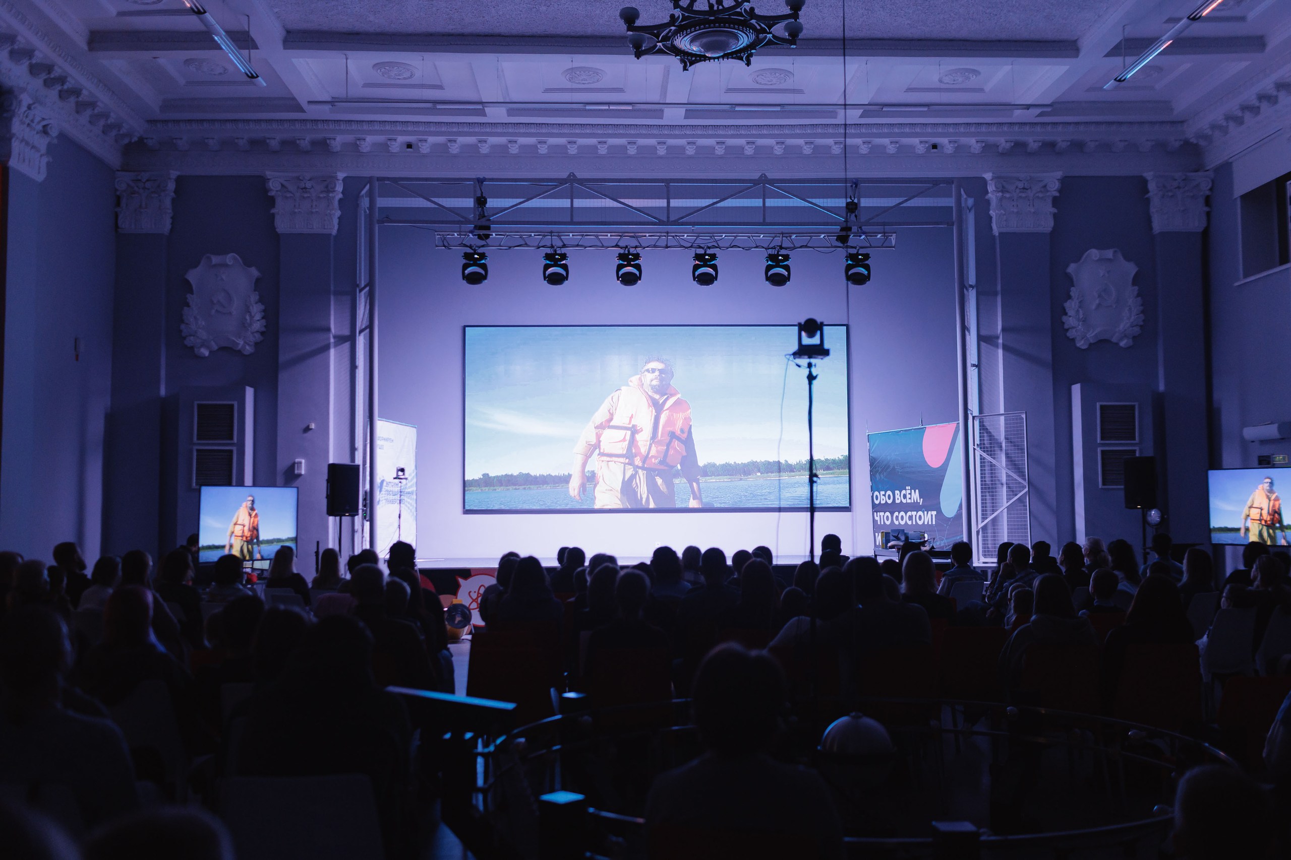 Вечер начался с просмотра фильма «В прятки с полярными китами». Тридцать лет российские океанологи проводят летние месяцы в уникальном месте на Белом море вблизи мыса с характерным названием Белуший. Белые киты, или белухи приходят сюда с незапамятных времен. Зрители узнали, что ученые могут наблюдать китов невооруженным глазом в 30–40 метрах от берега и увидели работу океанологов. Так, эти специалисты ставят подводные камеры, наблюдают с помощью коптеров, проводят бесконечное количество экспериментов. Показ фильма прошёл в рамках Фестиваля актуального научного кино ФАНК при грантовой поддержке Министерства науки и высшего образования РФ в рамках Десятилетия науки и технологий.