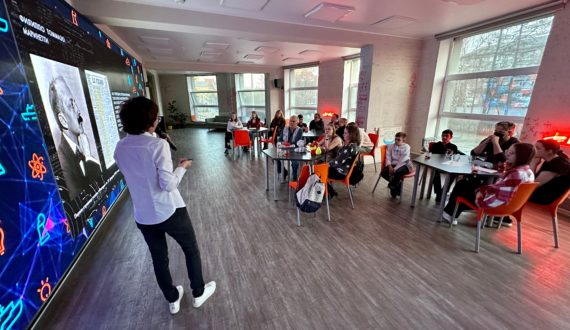 В завершение вечера с лекцией «Как наука и технологии меняют жизнь» выступила доцент кафедры гуманитарных дисциплин, кандидат культурологии Международного института дизайна и сервиса (МИДиС) Екатерина Трушникова. Она рассказала об эпохе научных открытий и преобразованиях в культуре, об искусстве будущего, культурной критике техники и беспрецедентного роста цифровых технологий, а также о ядерном искусстве и открытиях в атомной физике – от оптимистического любования до апокалипсиса.