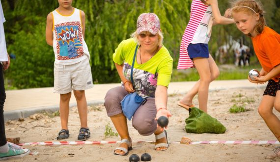 Новыми локациями на фестивале стали игры «Атомная боча» и «Кротовая нора», семьи соревновались в меткости и точности бросков.