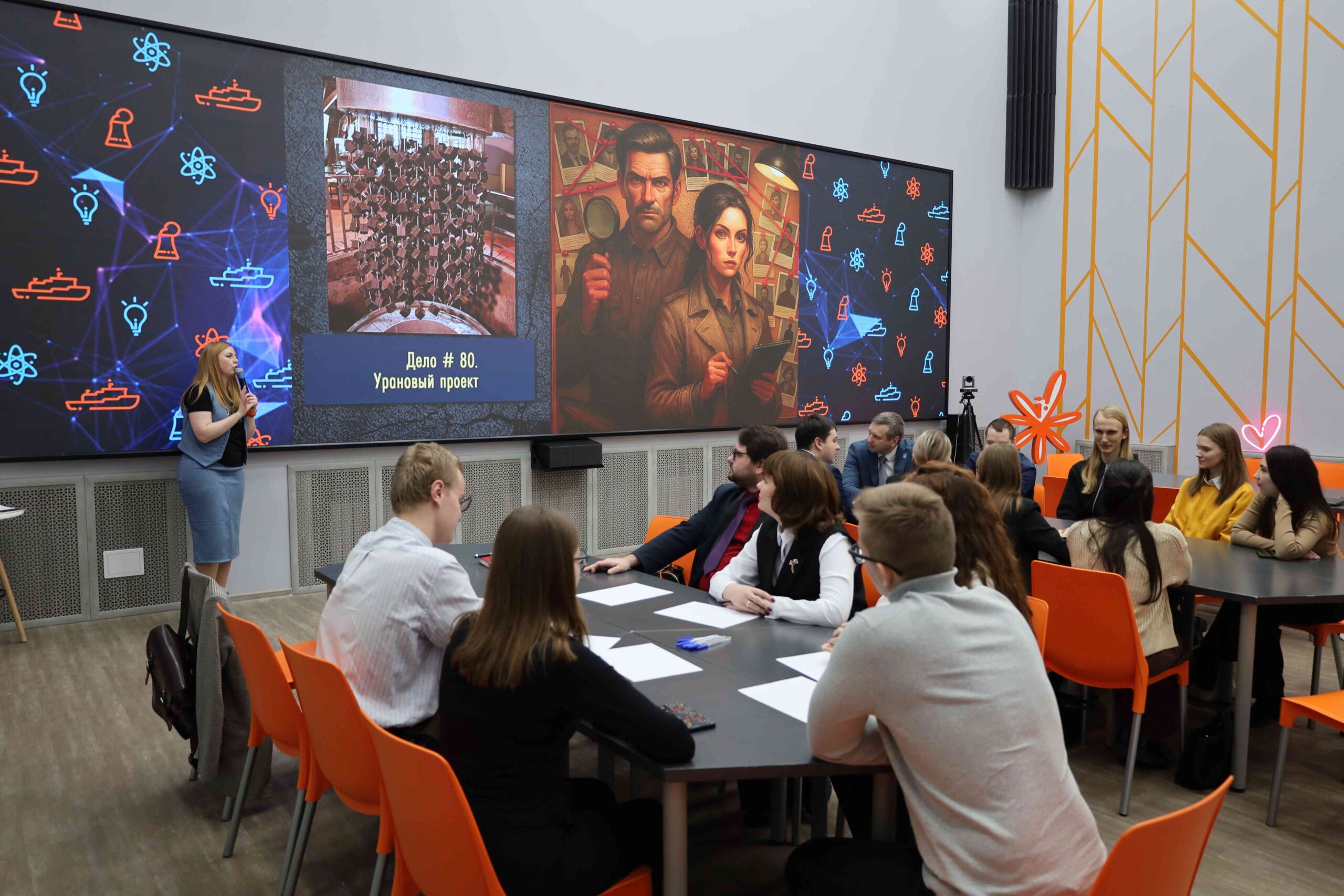 Сначала студенты и молодые учёные отправились в прошлое, пройдя увлекательную детективную игру «Дело №80. Урановый проект». Участники стали свидетелями секретных операций времен окончания Великой Отечественной войны. Чтобы приблизиться к разгадке, они отвечали на исторические вопросы, расшифровывали секретные досье и восстанавливали личность советских и зарубежных учёных, участвующих в гонках за обладание информацией об атомном оружии. В финальном раунде команде пришлось обнаружить уран, используемый для создания первой советской атомной бомбы.