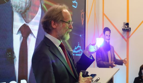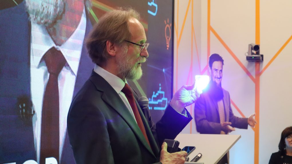 «Лазеры – это красиво, это шоу!» Такими словами начал свою лекцию, посвящённую лазерам, доктор физико-математических наук Владимир Решетов. Профессор рассказал смолянам об истории появления лазеров: от очень маленького рубинового лазера, помещающегося в ладонях, до огромных лазерных установок мегаджоулевого класса размером со стадион.