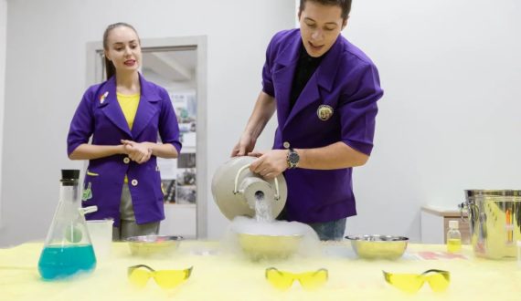 На криохимии агентство праздников «Nice Show» устроили для ребят настоящее научное шоу, создав леденящий арктический холод с помощью азота. А на уроке «краски Севера» вместе с художницей Жанной Пономарёвой гости центра, узнав, в какие цвета окрашена Арктика, создали свои уникальные шедевры с её пейзажем.