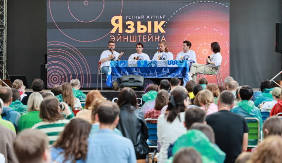 Еще одним мероприятием этого блока стало ток-шоу «Язык Эйнштейна», на котором химик Саша Иванов, историк Антон Кочнев, а также атомщики Алексей Агафонов и Евгений Ляпин обсуждали научные новости. Объяснять их понятнее помогала Александра Золотова, специалист пресс-службы Белоярской АЭС и участница телевизионной игры «Что? Где? Когда?» в составе команды Константина Рудера.