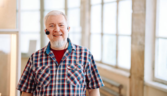 Лекцию о ядерной медицине Алексей Водовозов прочитал в креативном кластере «Л52», который находится в памятнике конструктивизма — самом большом доме-коммуне Советского Союза. Локация была выбрана не случайно — в этом корпусе большого дома-коммуны ранее находилась поликлиника.