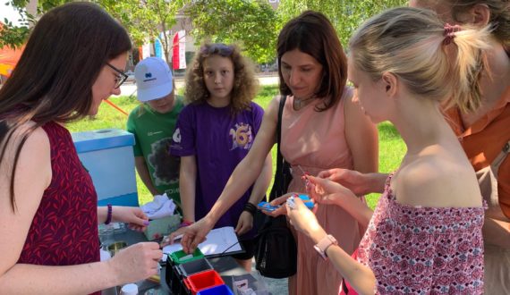«Научную лужайку» организовал для горожан Информационный центр по атомной энергии (ИЦАЭ) Саратова вместе с партнерами Экологизатор и Федерация роллер спорта на «Городском пикнике», который прошёл 9 июля в обновлённом сквере у кинотеатра «Победа».