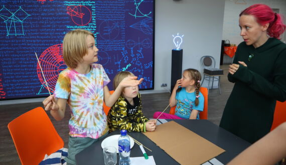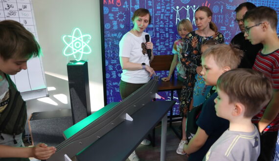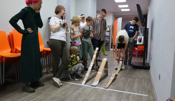 Но главным испытанием для гостей стала инженерная задача «Сопромат для чайников» — строительство брахистохрона (кривой скорейшего спуска) из подручных материалов. Участники вспомнили задачу Иоганна Бернулли 1696 года и создали собственные «горки», после чего проверили их эффективность, спуская игрушечную машинку. Победила команда «Умные и красивые», их машина уехала дальше остальных.