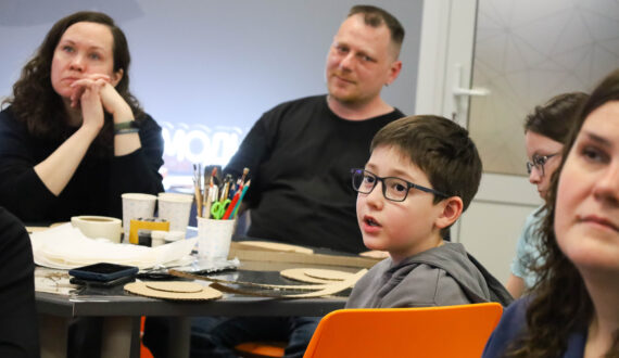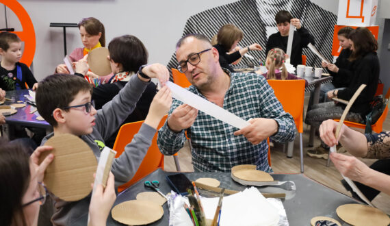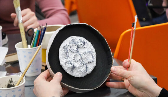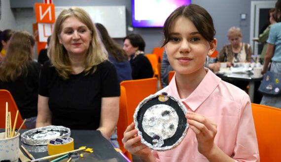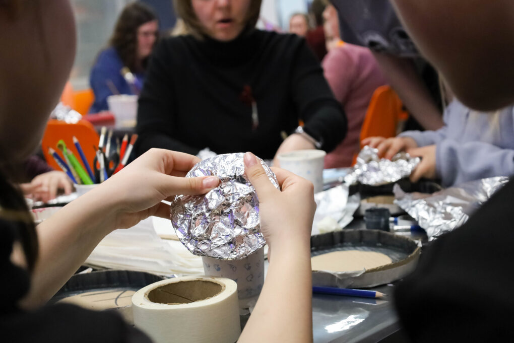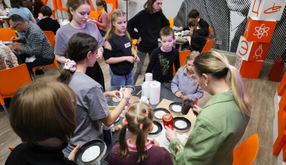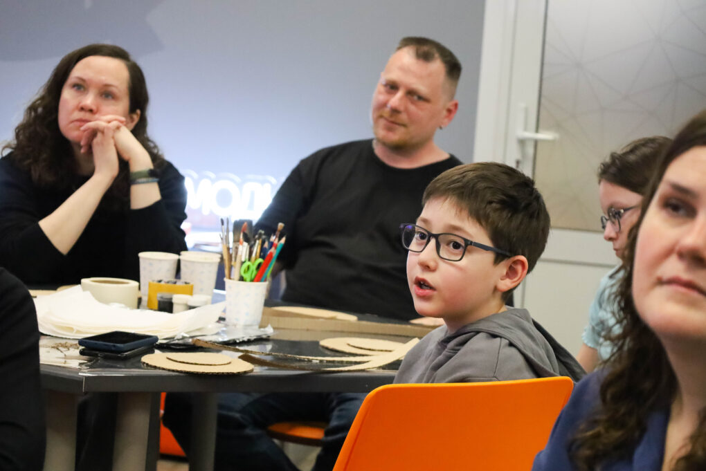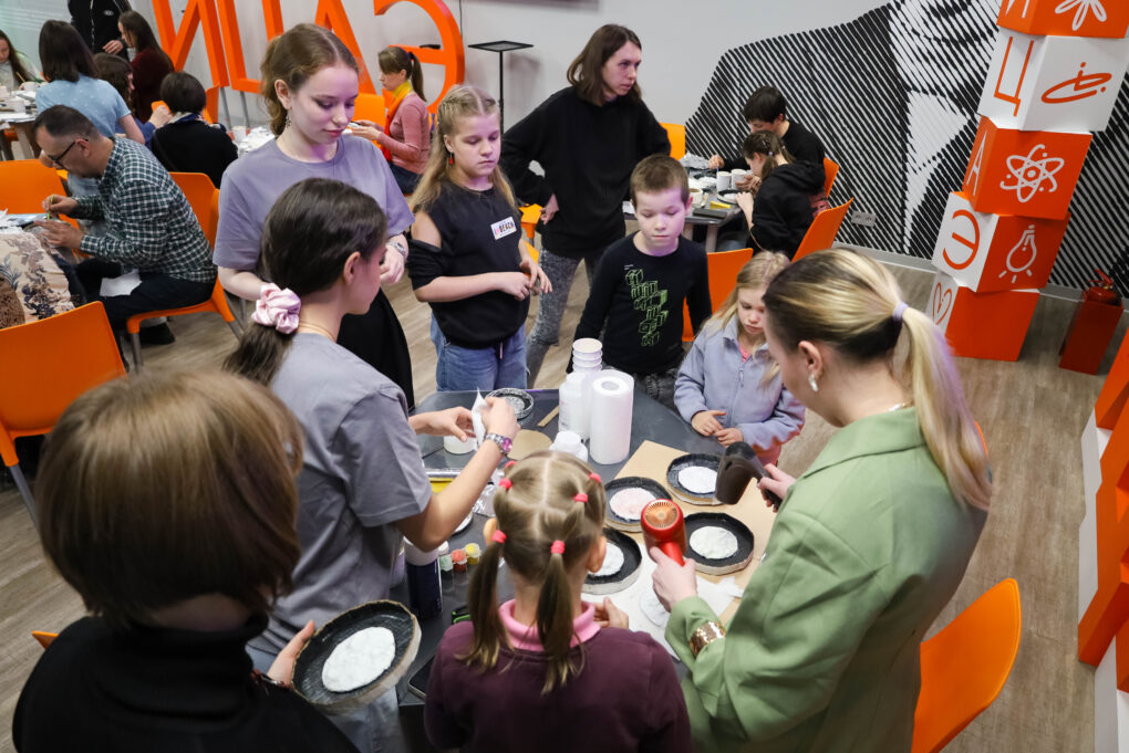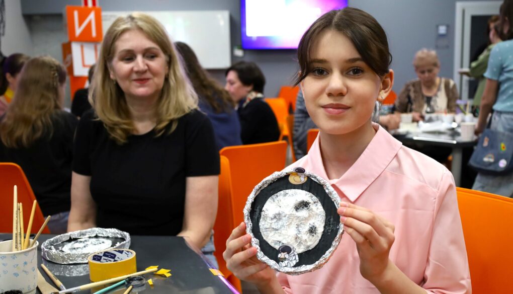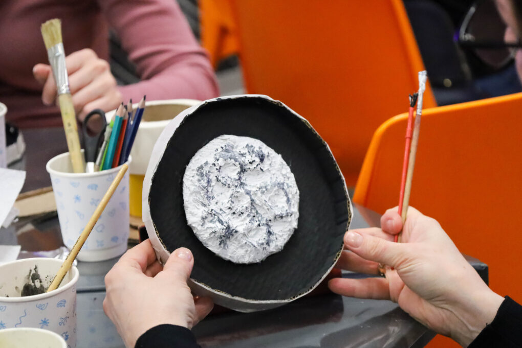 Под руководством учителя начальных классов Елизаветы Новик гости ИЦАЭ создали объёмный макет Луны в технике папье-маше. В ходе работы они познакомились с особенностями рельефа спутника Земли и узнали, как формируются лунные кратеры и моря.