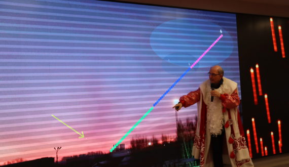 В роли Деда Мороза – главного волшебника Нового года – выступил кандидат физико-математических наук, член Союза журналистов России и популяризатор науки Сергей Пахомов. Эксперт рассказал, что 22 декабря Луна встречается с Юпитером, и в связи с этим событием любители-астрономы участвуют в акции: делают фотографии спутника Земли из разных точек мира.