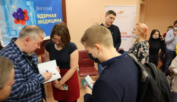Вечером в рамках фестиваля науки «Кстати» состоялось научно-популярное ток-шоу «Разберём на атомы», посвящённое теме ядерной медицины, которое прошло в НКЦ им. Е.П Славского.