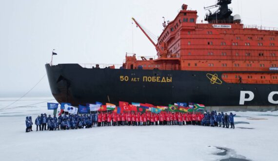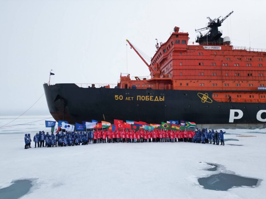В 2025 году международная научно-просветительская экспедиция «Ледокол знаний» приурочена к 80-летию атомной промышленности России и 500-летию начала освоения Россией Северного морского пути, празднование которого учреждено указом президента РФ Владимира Путина (от 10 марта 2025 года). Участниками шестой международной арктической экспедиции стали школьники из 21 страны (Россия, Беларусь, Армения, Монголия, Турция, Венгрия, Египет, Казахстан, Кыргызстан, Узбекистан, Китай, Индия, Вьетнам, Мьянма, Бангладеш, Индонезия, Гана, Намибия, ЮАР, Боливия и Бразилия). Научно-просветительская программа экспедиции разработана Корпоративной академией «Росатома». Экспедиция прошла по маршруту Мурманск – Северный полюс – Земля Франца-Иосифа – Мурманск. Географического Северного полюса экспедиция достигла 17 августа 2025 года.