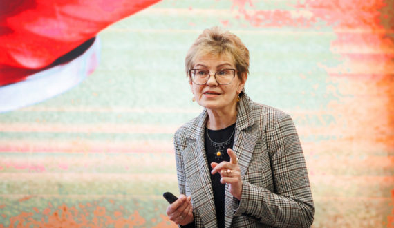 О разнообразии диалектов в белорусском языке слушателям рассказала Вероника Курцова, кандидат филологических наук, доцент, заведующая отделом диалектологии и лингвогеографии Института языкознания имени Якуба Колоса НАН Беларуси. Белорусский язык действительно очень богат на слова. В «Тлумачальный слоўнік беларускай літаратурнай мовы» (2022) включено больше 65 000 слов. Важной составляющей белорусского языка являются диалекты и локальные говоры. «Сярэднебеларускія гаворкі не з’яўляюцца асобным дыялектам. Яны спалучаюць у сабе асобныя рысы паўночна-ўсходняга і паўднёва-заходняга дыялектаў беларускай мовы, але акрамя гэтага маюць свае ўласныя адметнасці. Найважнейшай іх асаблівасцю з’яўляецца аканне і цвёрды зычны [р]», — подчеркнула спикер.