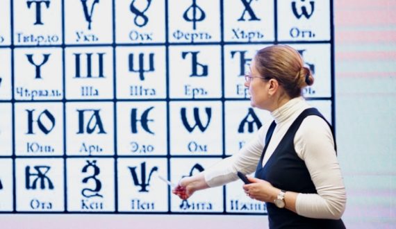 Ирина Будько, кандидат филологических наук, доцент, ведущий научный сотрудник отдела истории белорусского языка Института языкознания имени Якуба Коласа НАН Беларуси, рассказала об истории становления и развитии белорусского языка. «Старажытныя кніжнікі пісалі тэкст у два слупкі, па прыкладзе візантыйскіх кніг. Для эканоміі месца словы ў тэксце не раздзяляліся, не абазначаліся пераносы. Чырвоным колерам і малюнкамі вылучаліся пачаткі абзацаў ці глаў», — объяснила Ирина Будько.