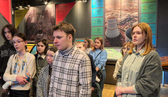 Вечер начался с экскурсии по экспозиции «Атомная энергия», во время которой гости узнали о том, кто же предложил использовать атом в мирных целях, как работают атомные электростанции и какими уникальными проектами славится российская атомная отрасль.