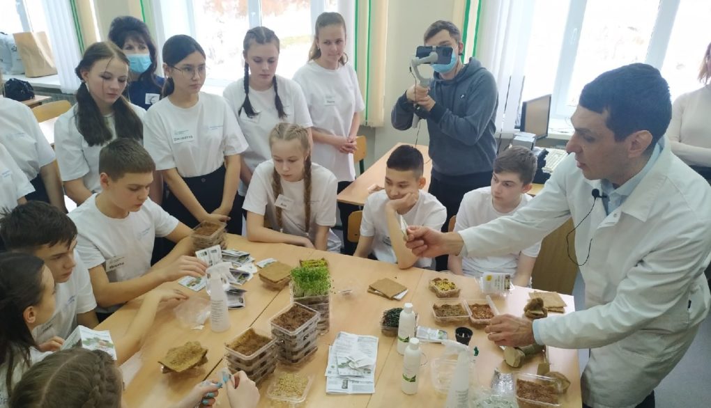 Ребят ждала насыщенная программа. Так, сити-фермер Антон Бельтюков привез в подарок Мирнинской средней школе гидропонную установку для выращивания микрозелени в городской среде круглый год и провел мастер-класс по ее использованию. А основатель проекта «30 скверов» и дизайнер Светлана Кекина обсудила с ребятами способы улучшения окружающей среды в поселке.