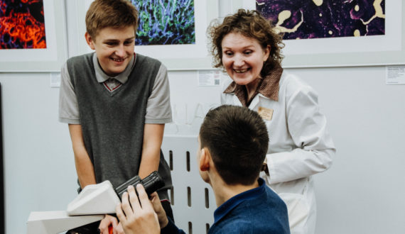 Мероприятие состоялось 9 февраля в рамках проекта «ИЦАЭ OPEN» и началось с серии мастер-классов: в нём приняли участие ребята из общеобразовательных школ и детского технопарка «Кванториум». Опытные преподаватели кафедры гистологии, цитологии и эмбриологии КрасГМУ Ольга Енуленко и Елена Романова рассказали о том, как настраиваются микроскопы и продемонстрировали участникам уникальные микропрепараты. Многие из этих препаратов ребята могли наблюдать вокруг себя, поскольку занятия проходили в зале, где в этот день открылась выставка микрофотографий «На стекле».