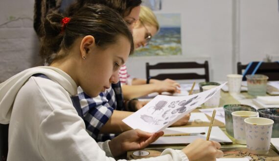 Вечер начался с мастер-класса по рисованию насекомых с помощью кофе. Команда «ПРОСТО школа рисования» познакомила участников с техникой гризайль — искусством создания изображений в одном цвете с тоновыми вариациями. «Кофе, богатый органическими веществами и танинами, при высыхании образует естественные градиенты и фактурные узоры, позволяя передать текстуру панциря насекомых», — отметил ведущий мастер-класса Антон Костин. Гости учились передавать свет и тень в этой технике, создавая изображения насекомых нежными кофейными оттенками.