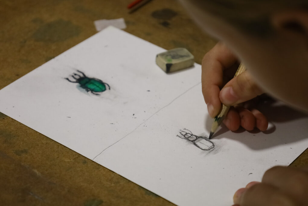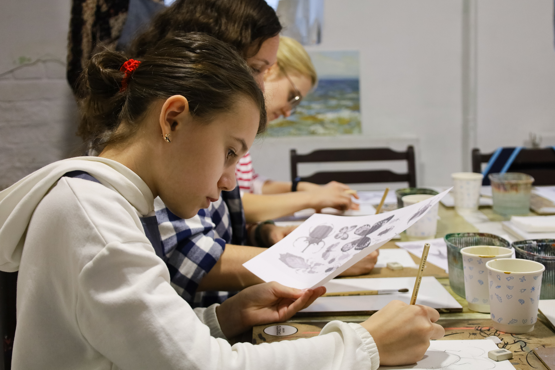 Вечер начался с мастер-класса по рисованию насекомых с помощью кофе. Команда «ПРОСТО школа рисования» познакомила участников с техникой гризайль — искусством создания изображений в одном цвете с тоновыми вариациями. «Кофе, богатый органическими веществами и танинами, при высыхании образует естественные градиенты и фактурные узоры, позволяя передать текстуру панциря насекомых», — отметил ведущий мастер-класса Антон Костин. Гости учились передавать свет и тень в этой технике, создавая изображения насекомых нежными кофейными оттенками.