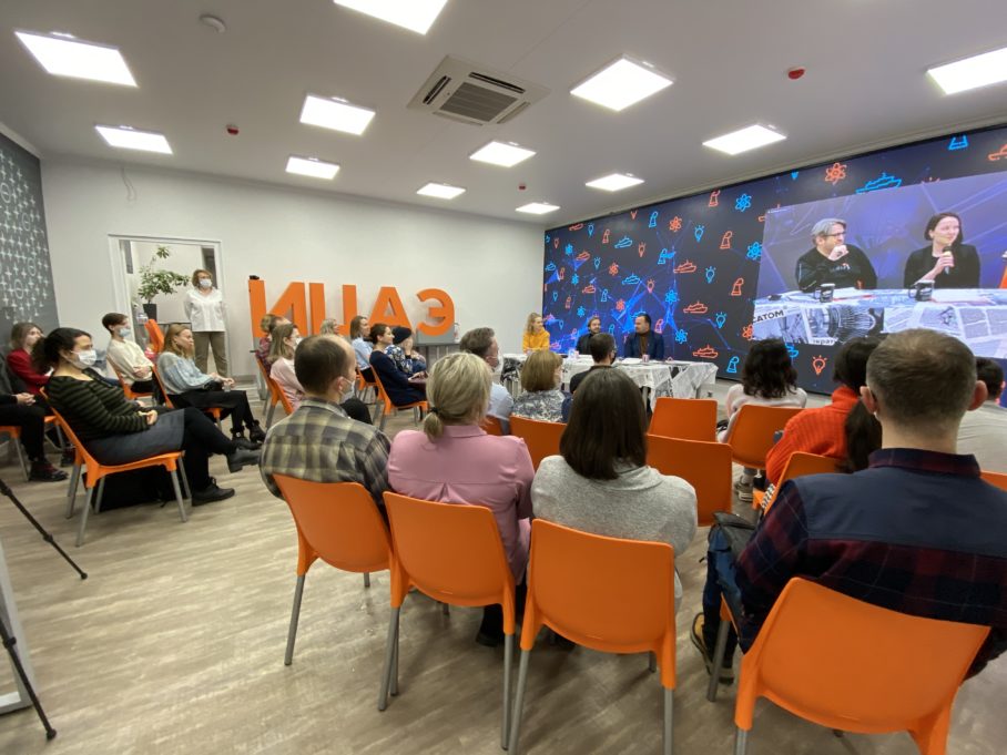 Обновлённый выпуск устного журнала «Язык Эйнштейна 2.0» состоялся в четверг, 18 ноября, в Информационных центрах по атомной энергии (ИЦАЭ) Екатеринбурга и Челябинска в формате телемоста. Учёные и популяризаторы науки собрались сразу в двух ИЦАЭ, чтобы обсудить самые свежие новости науки и их значение в стиле шоу «Прожекторперисхилтон».
