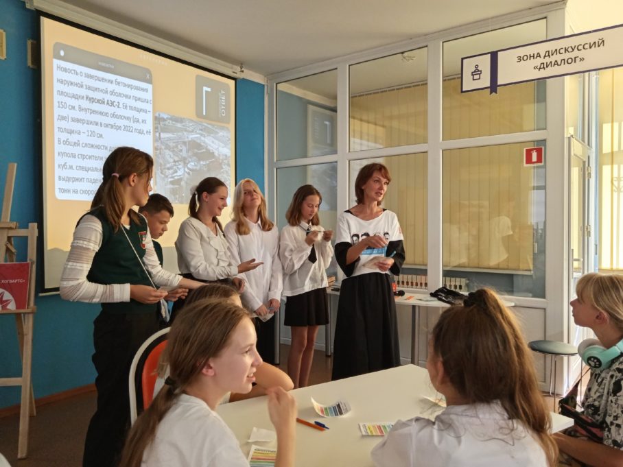 После занятия школьники сыграли в интеллектуальные игры сети ИЦАЭ «Атомное мемори», «Атомные дилеммы» и «Хронограф».