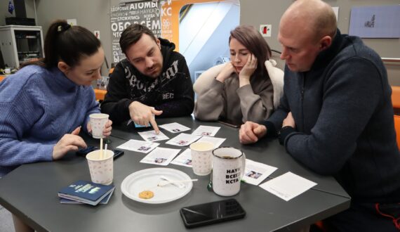 В завершение вечера прошла новая детективная игра сети ИЦАЭ «Дело №002: Тайна полярных льдов». Участники примерили на себя роль детективов, которые путешествовали в круизе на атомном ледоколе к Северному полюсу. Но отдых был прерван, когда на борт ледокола поднялась группа подозрительных экоактивистов.
