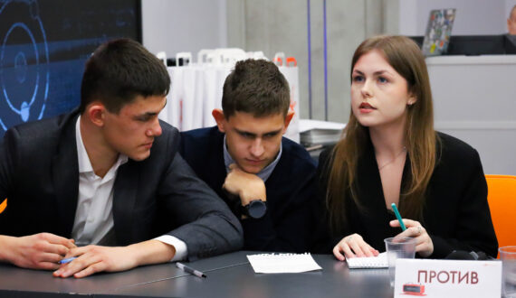 Эмоциональным и интеллектуальным накалом стал финальный поединок регионального этапа турнира по дебатам «Убеди меня». Две лучших команды отборочного турнира – «Семёрка» и «Pro100» – сразились друг с другом на актуальную научно-популярную тему. Оценивали школьников компетентные жюри: Галина Шкарупа – ведущий эксперт отдела реализации проектов и программ в сфере патриотического воспитания граждан «Росдетцентра», председатель Саратовского областного отделения «Союз добровольцев России»; Виталий Агеенков – преподаватель факультета искусств СГУ, руководитель театра кукольной авантюры «ВиВаАт» и театрального объединения «Студия 180»; и Татьяна Иванова – специалист по работе с молодёжью, руководитель медиа-направления сообщества студентов Росатома СГТУ. Оценку жюри давали по трём критериям: аргументация, ораторское мастерство, юмор и находчивость.