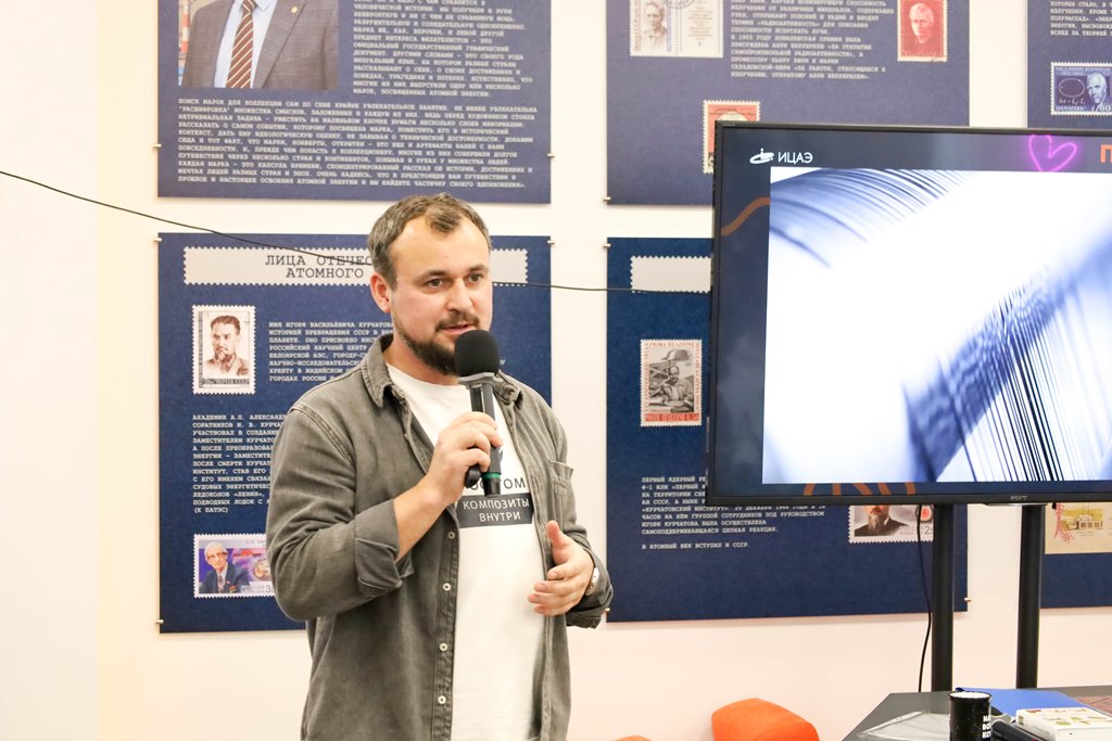 Начался день с профориентационной лекции о композитах «Что общего у самолёта, скейта и гитары?», которую провёл Фёдор Новиков – заместитель директора департамента по связям с общественностью «Росатом Композитные технологии» и основатель проекта «Росатом. Композиты внутри».
