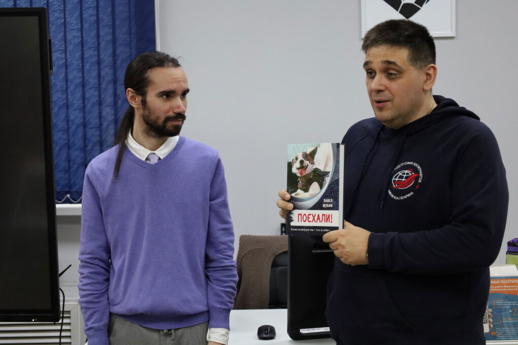 В завершение лекции Павел Шубин передал в дар Молодёжному центру «БиблиоДвиж» Мурманской областной детско-юношеской библиотеки свою книгу «Поехали!», в которой он рассказывает о подготовке к первым космическим полётам, начиная с запусков животных по суборбитальной траектории и заканчивая последними миссиями программы «Восток».