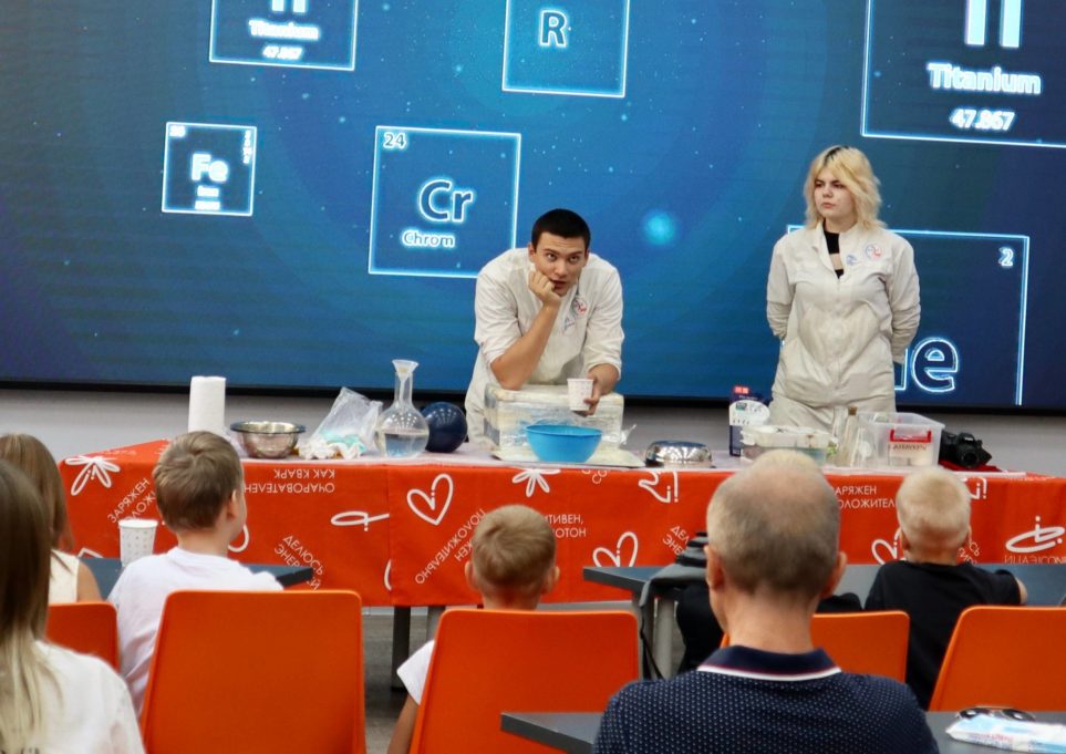 Программа началась с научного шоу. Гости центра погрузились в мир химии и физики вместе с Театром удивительной науки от факультета автоматизации, мехатроники и управления Донского государственного технического университета.