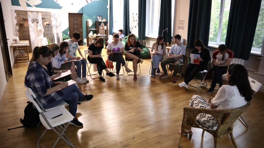 Для этого они выполнили несколько заданий: изобразили образ своего имени, разбившись на микрогруппы, нарисовали совместный рисунок и другие.
