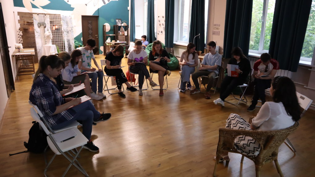 Для этого они выполнили несколько заданий: изобразили образ своего имени, разбившись на микрогруппы, нарисовали совместный рисунок и другие.