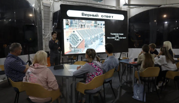 Завершил вечер интеллектуальный «Атом-квиз», который провёл Евгений Кипелкин, лектор Российского общества «Знание» и сотрудник Института прикладной физики РАН. Вопросы квиза охватывали широкий спектр тем, связанных с развитием атомной энергетики в современной России, проектом «Прорыв» и инновационными направлениями работы ГК «Росатом» в области зеленой энергетики. Участники квиза смогли не только проверить свои знания, но и углубиться в актуальные вопросы атомной промышленности, которая сегодня является важным фактором устойчивого развития энергетики.