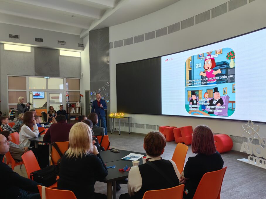Открыл вечер интерактив «Наш научный, атомный мем», в ходе которого участники создавали мемы, объединяющие научные концепции и популярный интернет-формат. Эта часть события позволила каждому проявить креативность и взглянуть на сложные темы через призму юмора.