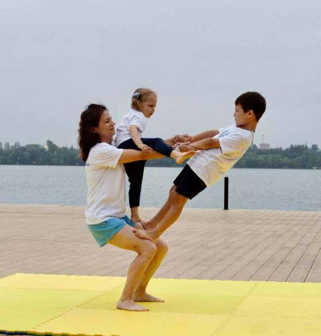 Первой блок разминки провела доцент Воронежской государственной академии спорта, кандидат педагогических наук, мастер спорта по спортивной акробатике, руководитель «Центра развития семейной акробатики» Екатерина Черенкова. А второй – физкультурно-спортивный клуб «Турбо Русич» под руководством Алексея Гончарова.