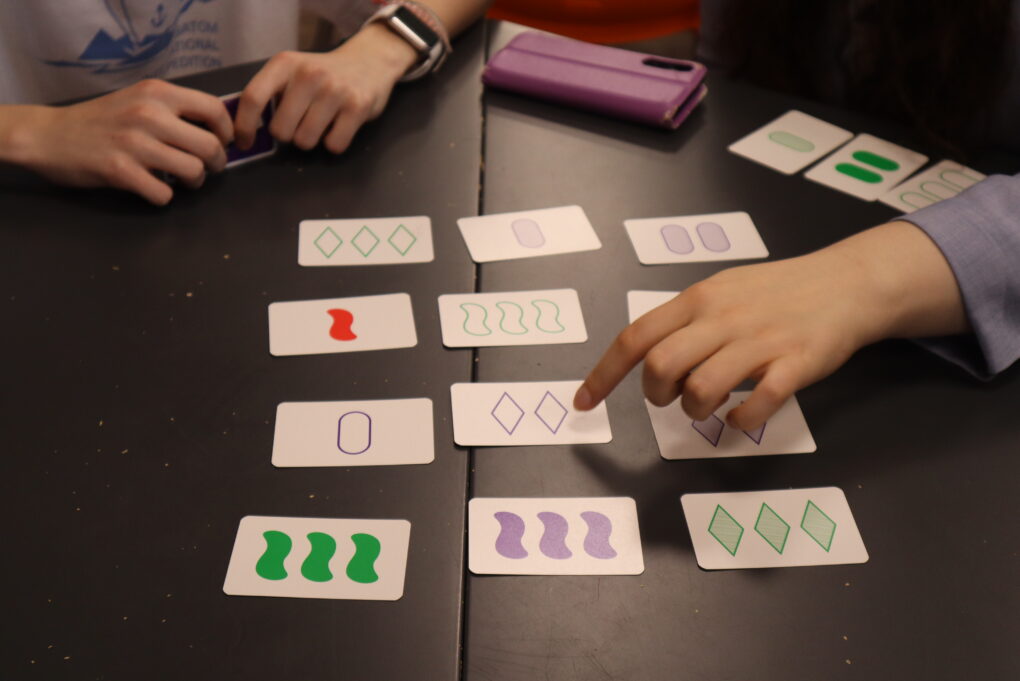 Вечер начался с игротеки. Гости смогли поиграть в «Хронограф» и «Чепухатом» — любимые игры сети ИЦАЭ. С ними можно не только весело провести время, но и узнать много нового. Также большое внимание привлекла игра на визуальное восприятие «Сет», во время которой игроки концентрировались на фигурах и цветах, чтобы найти комбинации карт, которые можно убрать с игрового поля.
