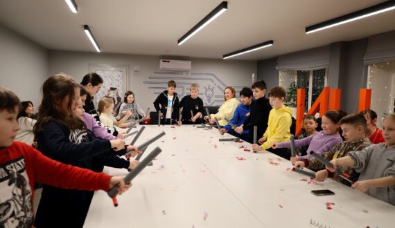 Вечер открыл мастер-класс по созданию праздничных хлопушек. Образовательный акцент был сделан на изучении физических принципов, лежащих в основе работы пиротехнических изделий. Юные участники мастер-класса на практике разобрали механизмы возникновения избыточного давления и законы акустики, узнав, как энергия преобразуется в звуковую волну.