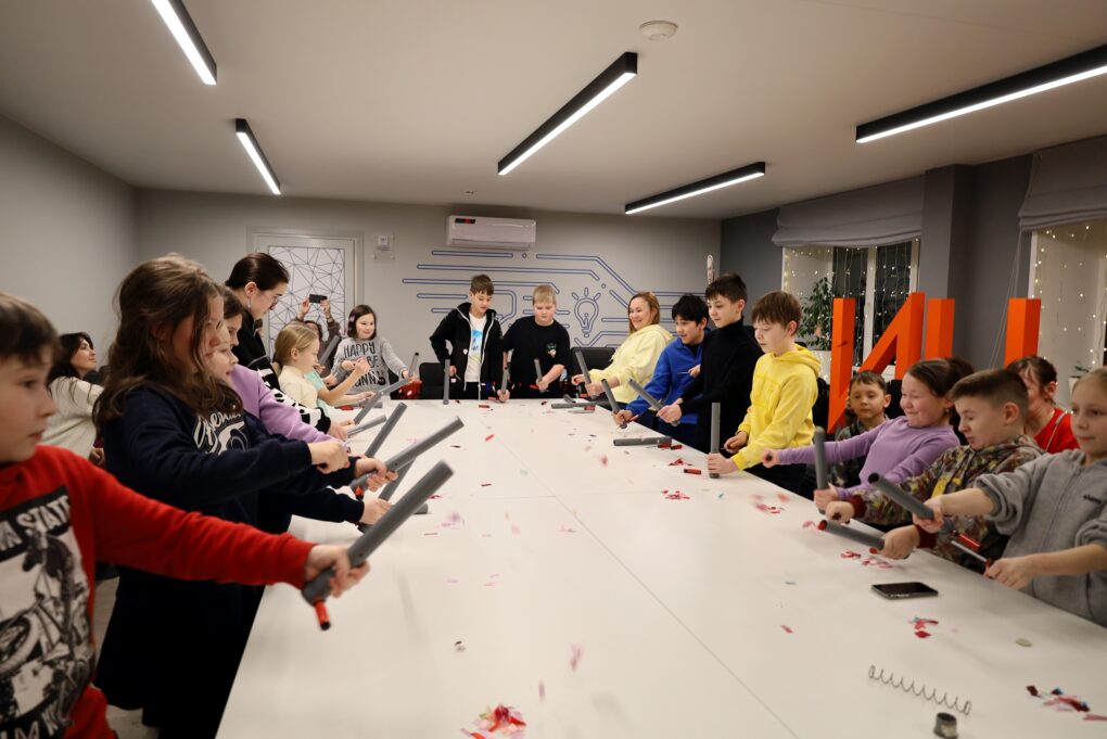 Вечер открыл мастер-класс по созданию праздничных хлопушек. Образовательный акцент был сделан на изучении физических принципов, лежащих в основе работы пиротехнических изделий. Юные участники мастер-класса на практике разобрали механизмы возникновения избыточного давления и законы акустики, узнав, как энергия преобразуется в звуковую волну.