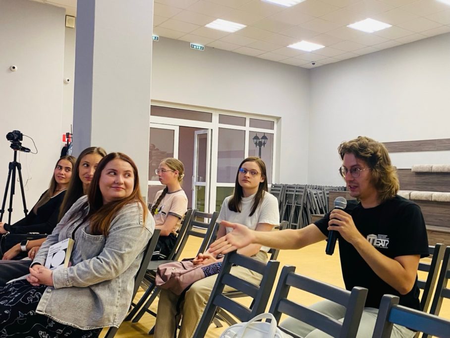 Затем гости переключились на философские вопросы в компании Дины Озеровой, книжного блогера, автора Telegram-канала «Книжный странник», главного библиотекаря Мурманской государственной областной универсальной научной библиотеки. Дина представила книгу Бенхамина Лабатута «Когда мы перестали понимать мир». Книга является уникальным писательским взглядом на научные открытия физиков XX века и события, которые их окружали.