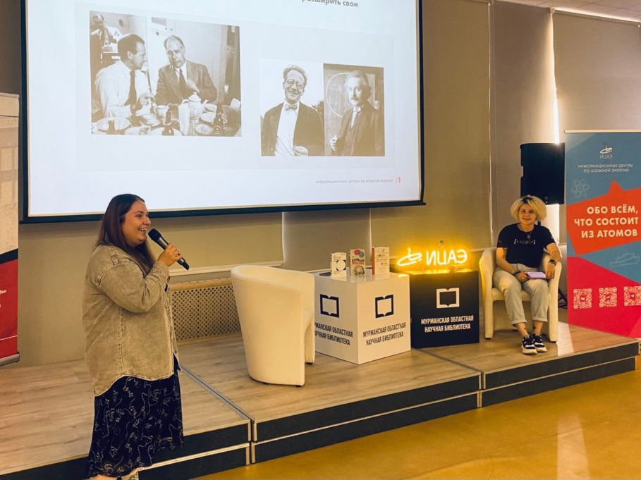 В завершение летних каникул команда Информационного центра по атомной энергии (ИЦАЭ) Мурманска 21 августа провела ток-шоу «Научные чтения», которое объединило специалистов библиотек и любителей научно-популярной и non-fiction литературы. Мероприятие состоялось на площадке Мурманской государственной областной универсальной научной библиотеки при поддержке Центральной городской библиотеки Мурманска и Мурманской областной детско-юношеской библиотеки имени В.П. Махаевой.