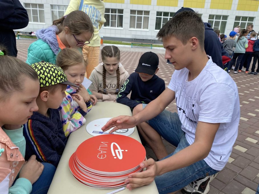 Играя в «Атомный доббль», участникам необходимо была находить на карточках одинаковые предметы, связанные с атомной отраслью. Во время игры школьники узнали, что такое градирня, ветряк и ледокол.