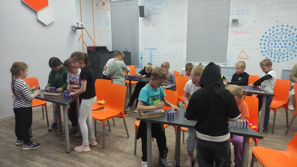 Что такое цепная реакция? Как устроен атомный реактор и как Фиксики помогли Дим Димычу? Об этом участники проекта «Научные каникулы» узнавали на занятии «Цепная реакция». Посетители разобрались, что такое цепная реакция и что происходит внутри атомного реактора после его пуска, потренировались запускать цепную реакцию с помощью «Атомного домино», а также самостоятельно построили простейшую машину Голдберга.