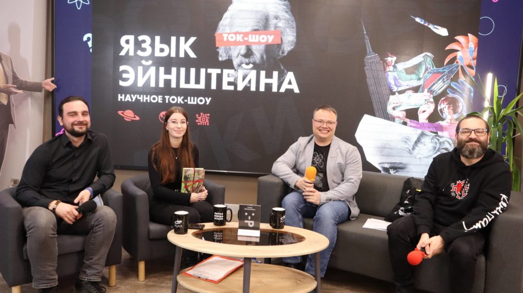 Затем на «Языке Эйнштейна» трое учёных обсудили последние новости науки. Открытия в области космонавтики комментировал Михаил Котов, научный и военный журналист, автор изданий «TechInsider», популяризатор космонавтики, директор по развитию Летней космической школы. Михаил рассказал о роботе-гуманоиде из Индии, открытии новой нетипичной карликовой галактики и рекорде пребывания в космосе.