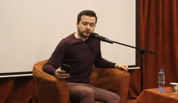 Затем эстафета перешла к Артёму Свирякову, актёру, учредителю и председателю правления АНО «Центр «Культурный город». Специально к мероприятию он прочитал работу «Происхождение языка: Факты, исследования, гипотезы» лингвиста и доктора филологических наук Светланы Бурлак. Артём сразу высказал восхищение колоссальной работой, проделанной автором при изучении темы: «Я очень уважаю такие серьезные исследования, они вызывают доверие. Поэтому я и решил в поисках ответа на вопрос, откуда все-таки произошёл язык, обратиться именно к этой книге».