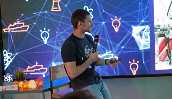 Открыла научный квартирник руководитель ИЦАЭ Красноярска Ирина Билай. Она рассказала про главные научные события из жизни центра и личной популяризаторской деятельности. Поделилась впечатлениями от экспедиции на Северный полюс и участия в открытии обновлённого аэропорта имени Курчатова в Челябинске, напомнила про первый фестиваль науки «КСТАТИ» в Красноярске, а также рассказала, как проходила реновация в центре, какие новые экспонаты и возможности появились у посетителей.