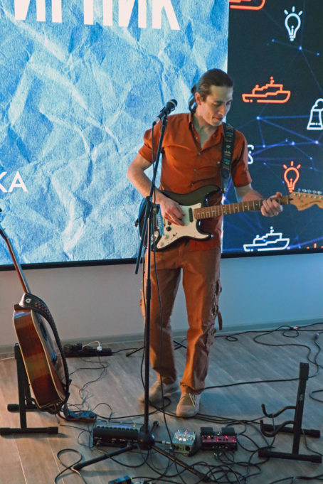 Завершился вечер выступлением, только уже музыкальным, ещё одного эксперта ИЦАЭ Красноярска – кандидата физико-математических наук, научного сотрудника института физики СО РАН, доцента СФУ Александра Фрейдмана. В компании саксофониста он исполнил несколько популярных рок-н-ролльных и джазовых композиций.