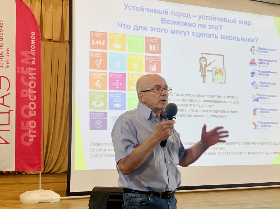 Лекцию на тему «Устойчивое развитие, устойчивый мир» провёл для участников смены кандидат физико-математических наук, ведущий научный сотрудник федерального государственного унитарного предприятия «Российский Федеральный ядерный центр – Всероссийский НИИ технической физики имени академика Е.И. Забабахина» Николай Горин.