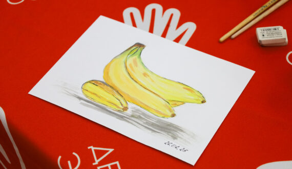 Первым событием вечера стал мастер-класс по акварельному скетчингу. Под руководством старшего научного сотрудника Ульяновского областного художественного музея Арины Чекушкиной участники создавали натюрморт с самым обычным, на первый взгляд, фруктом — бананом.