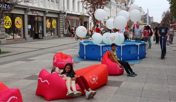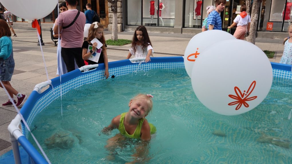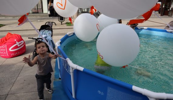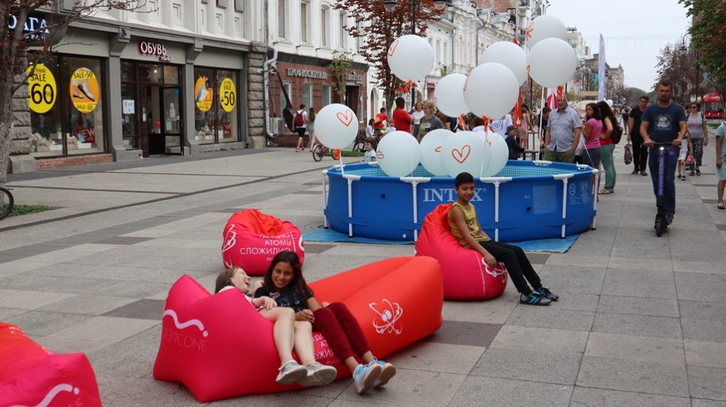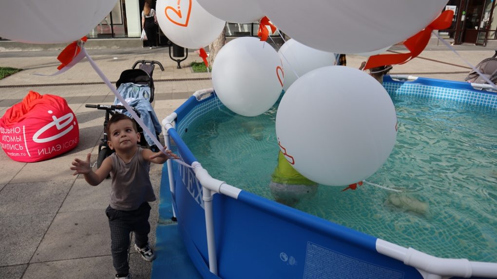 В течение всего дня горожане могли сделать красивые фотографии в необычной фотозоне – бассейне с шарами, на которых изображены графемы с ледоколами. А маленькие посетители могли поплавать в бассейне под присмотром взрослых.