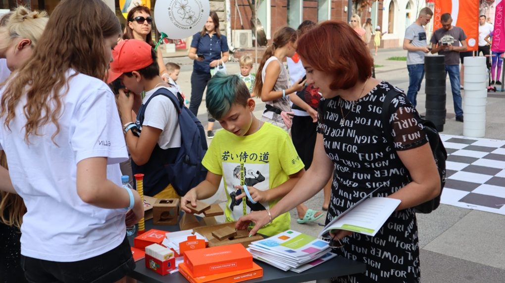 На интеллектуальной площадке шла «мозговая битва» – посетители сражались в скоростной сборке головоломок, дискутировали на заданную тему в игре «Атомные дилеммы», угадывали последовательность важных научных открытий и изобретений в игре «Хронограф», а также отгадывали слова в игре «Чепухатом», где к заданному слову нужно было подобрать верное определение.